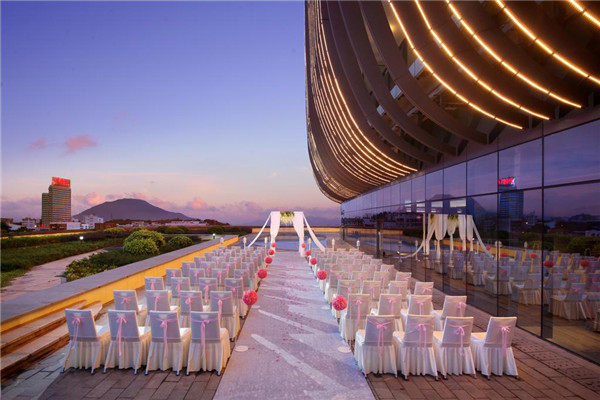 酒店总占地面积9万多平方米,酒店依山傍海,整体建筑呈自然的坡形状态。酒店拥有300余间/套的各类客房和10幢豪华别墅。酒店配有自助餐厅、西式扒房、大堂吧、行政酒廊、雪茄吧等各类餐饮设施,并设有丰富的宴会设施,多功能厅、大小会议室及毗邻于多功能厅的2000多平方米的冷餐草坪。