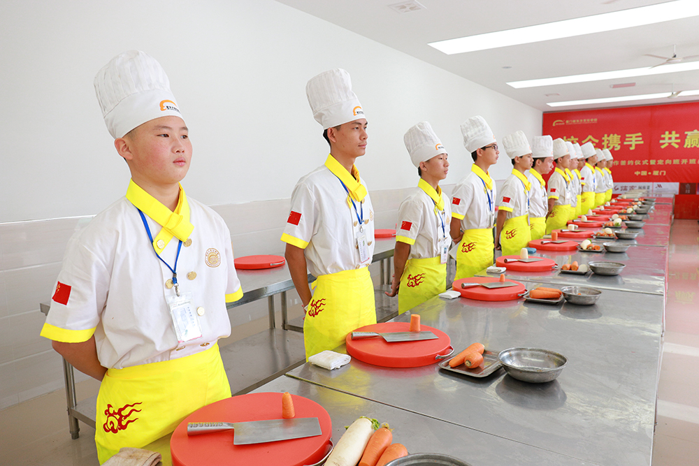 学生刀工翻锅练习